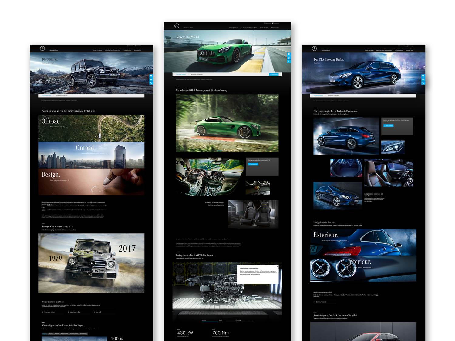 Neukonzeption und Neugestaltung der globalen Mercedes-Benz Länderplattformen wie die www.mercedes-benz.de mit neuem adaptiv-responsiven User Experience und User Interface Design als neue, zentralgesteuerte und konsolidierte Webplattform sowie die komplette Contentkonzeption, -koordination und -produktion mit Auslieferung zum Roll-Out für alle Daimler-/MB-Fachbereiche der Sparte Mercedes-Benz Cars in alle MB Länderorganisationen.